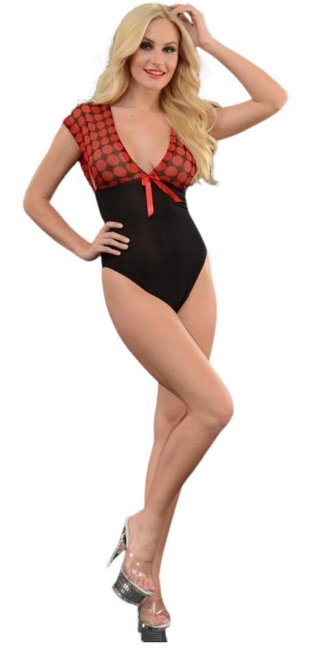 Женское боди с верхом в крупный горох.
