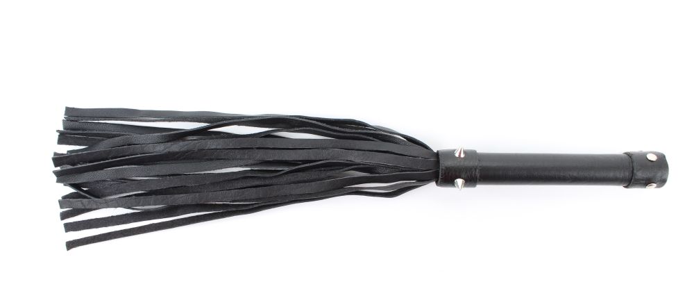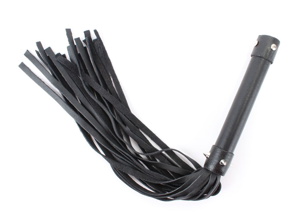 Плеть изготовлена из натуральной кожи, имеет 20 хвостов. Хвосты имеют вид лент. Украшена металлическими аксессуарами. Длина хвостов - 27,5 см.