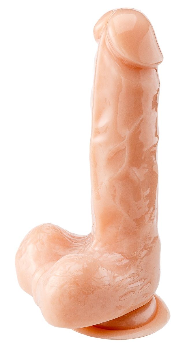 Телесный реалистичный фаллоимитатор на присоске для фиксации на плоскости. Имеет богатый рельеф поверхности. В комплекте мешочек для бережного хранения.