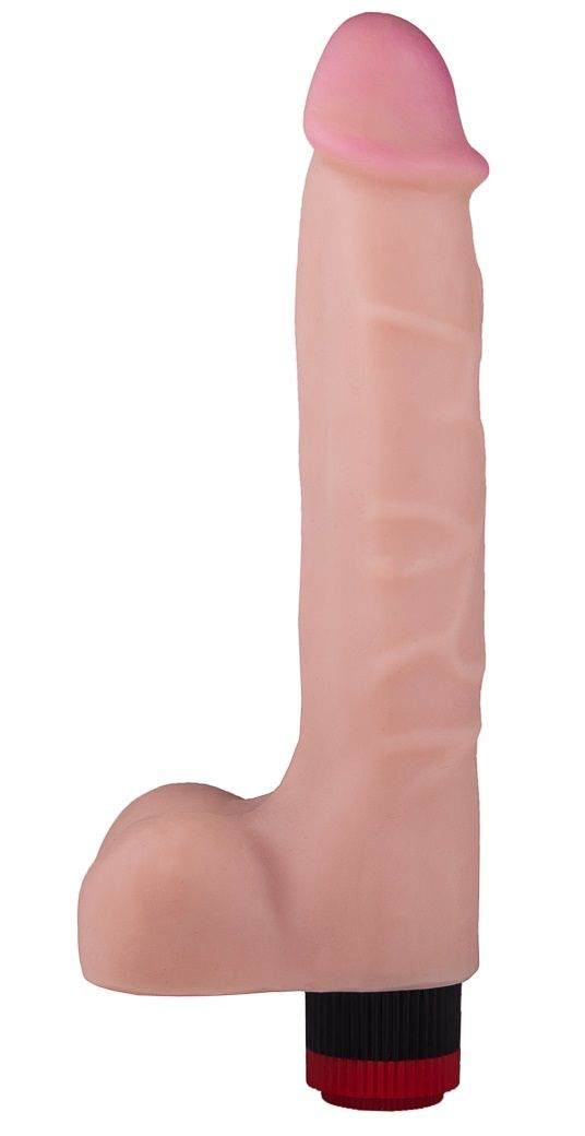 У этого вибромассажёра в форме фаллоса с мошонкой есть всё необходимое, чтобы покорить вас с первого же прикосновения. Игрушка выполнена из материала неоскин – упругого, бархатистого, точь-в-точь такого же на ощупь, как и кожа человека. Внутри ствола, украшенного с одной стороны переплетением вен, скрыт мощный виброэлемент, распространяющий вибрацию по всей длине. Кстати, регулировать трепет вибратора можно при помощи пульта-колёсика.
